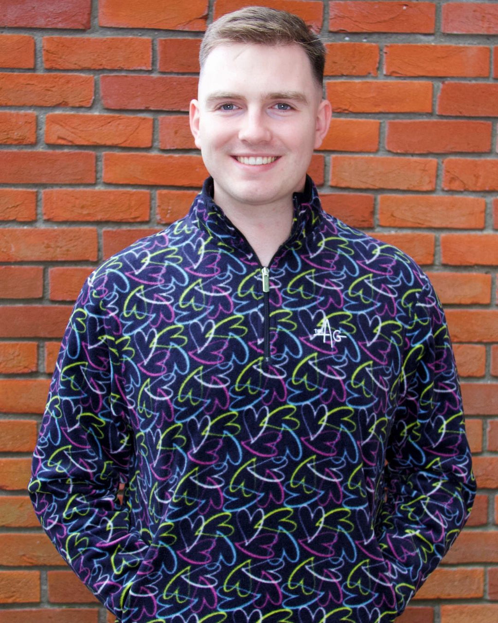 The Maria Heart Fleece is a playful and stylish half-zip designed for anyone who loves colour with a touch of charm. Covered in a lively pattern of hand-drawn heart shapes, glowing in shades of pink, yellow, blue, and white, this fleece brings warmth with personality. The dark base makes the colourful hearts pop, creating a look that’s bold yet beautifully balanced.